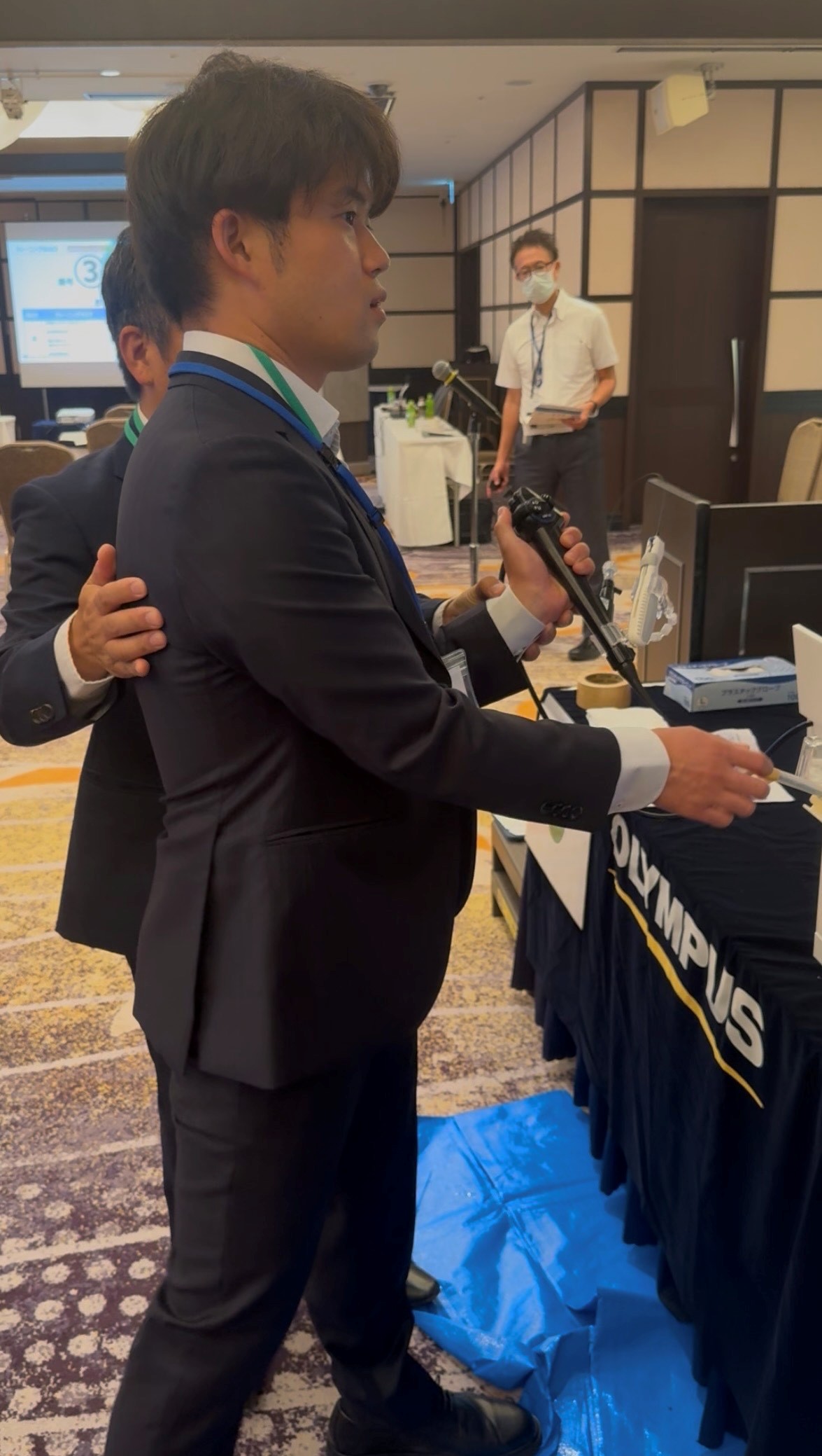 後期修練医、4年目の坂東太郎先生の結石学会の参加記をお届けします。 4月に全国デビューを果たし、今回は手術トレーニングにも参加して、一皮むけた感じでしょうか。 最近3年目の先生の学会発表の様子が多かったですが、先輩もステップアップして頑張っています。 心なしか3年目の先生より頼もしさが出ている!?(以下写真) 『このたび、2025年8月29日から30日にかけて東京都で開催された日本尿路結石症学会第35回学術集会に参加してきました。私は「尿路結石に伴う閉塞性腎盂腎炎における重症化リスクの検討」について発表の機会をいただきました。普段、我々は閉塞性腎盂腎炎に対して、ごく当然のようにドレナージ目的で尿管ステントを留置しておりますが、実はガイドライン上に明確な適応が記載されているわけではありません。そこで今回の検討では、どのような因子を持つ患者が重症化しやすいのかを検討し、臨床的に意義のある知見を示すことを目的としました。 準備の過程では、研究のアウトカム設定が大きな課題となり、臨床的に意味のある指標をどのように統計学的に裏付けるかに本当に苦労しました。統計解析に本格的に取り組むのは今回が初めてであり、Rの基本的な使い方から丁寧にご指導していただいた松本先生には心より感謝申し上げます。また、データ収集にご協力いただいた医局員の皆様、発表に向けて数多くのご助言をいただきました先生方のおかげで、内容を一層充実させることができました。誠にありがとうございました。 学会期間中には、事前予約制のハンズオンセミナーにも参加いたしました。普段何気なく行っている尿管鏡操作やバスケットカテーテルの使用について、限られた手術時間の中で効率よく進めるためのポイントをエキスパートの先生方から直接学ぶことができ、大変貴重な経験となりました。約3時間のセミナーでしたが、知らず知らずのうちに出来上がってしまっていた手技上の癖を修正でき、今後の手術に直結する学びを得られたと実感しています。これまで、ほとんどハンズオンセミナーに参加したことがなかったので、今後は機会があれば是非また参加したいと思います。 発表準備から当日の質疑応答まで、苦労も多く緊張も伴いましたが、多くの学びや気づきを得られた有意義な機会となりました。今回の経験を糧に、日々の臨床現場に還元していけるよう努めてまいります。』 松本先生と一枚 内視鏡手術のハンズオンセミナーでのトレーニングの様子