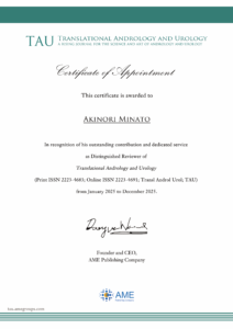 当教室、准教授の湊 晶規先生が、国際誌 Translational Androlyg and Urologyにおいて、